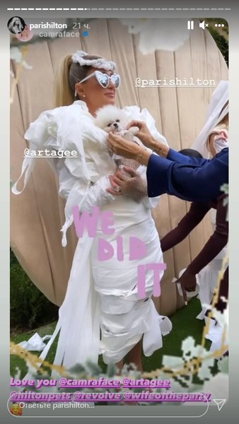 40-річна американська світська левиця та бізнесвумен Періс Гілтон влаштувала на задньому дворі свого маєтку в Лос-Анджелесі передвесільну вечірку, кадрами з якої поділилася в сторіз Instagram.