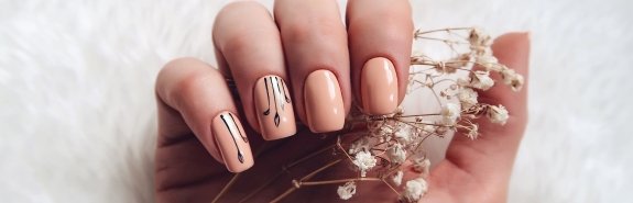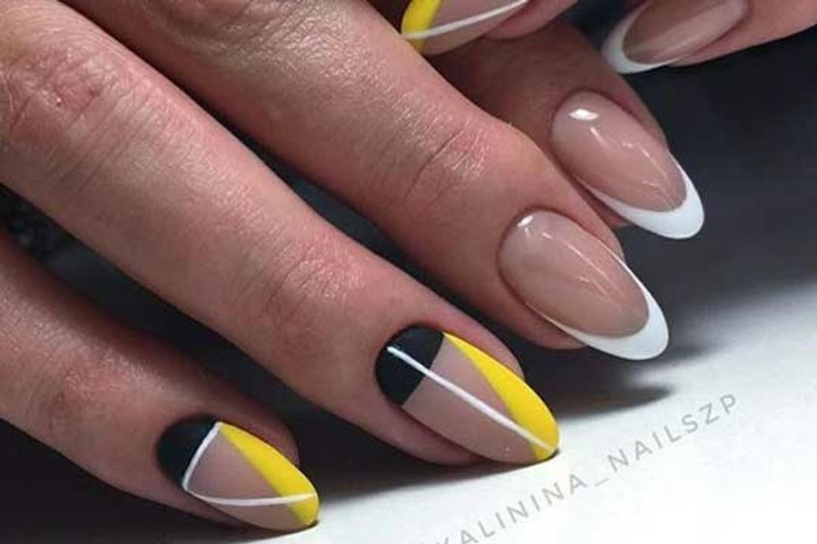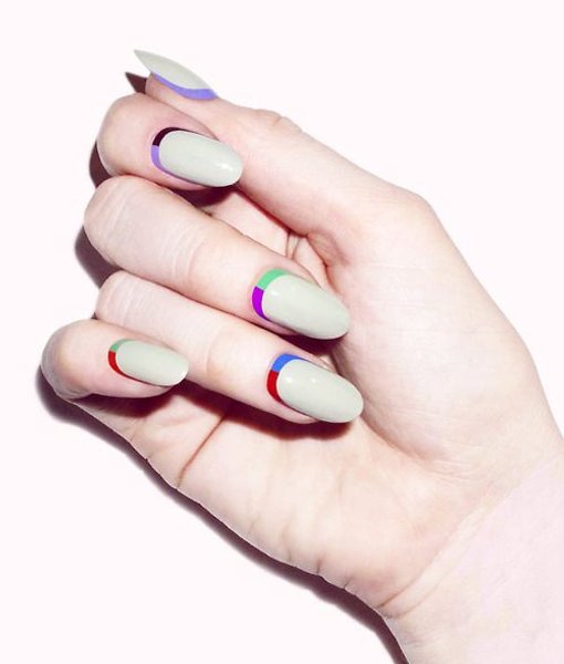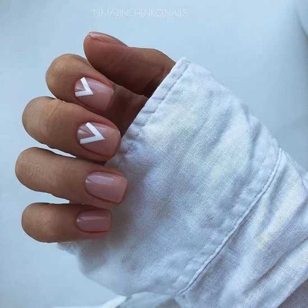 Нейтральний манікюр з тонкими прямими, ламаними або хвилястими лініями чорного, білого або яскравого кольору надасть йому нового прочитання. Він доречно виглядатиме як у повсякденному образі, так і в офісі.