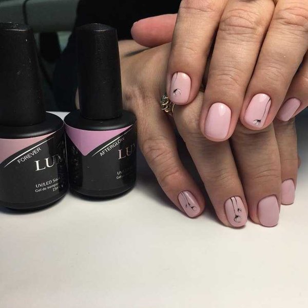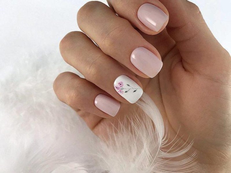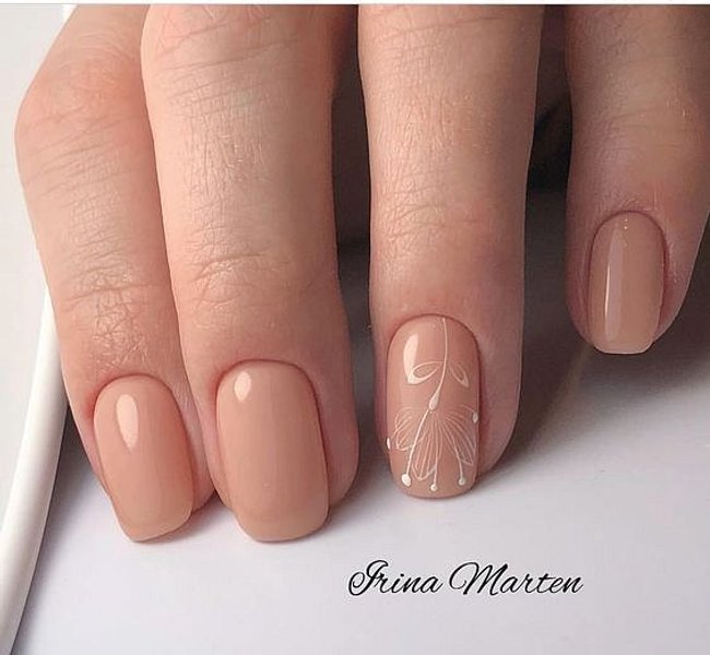 Малюнок у вигляді квітки, листочка, символу на манікюрі нейтрального кольору виглядатиме цікаво, якщо він зроблений на одному-двох нігтях. Таким чином він не перевантажить загальну картину манікюру, але додасть до нього родзинки.