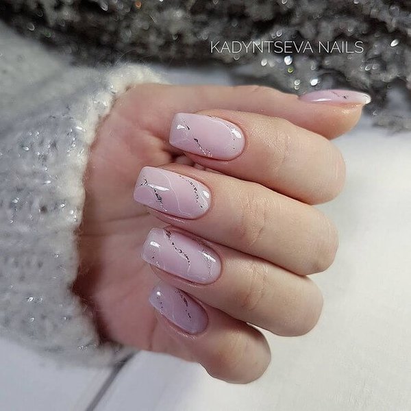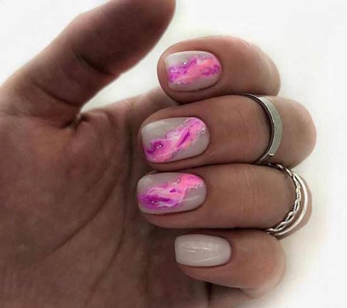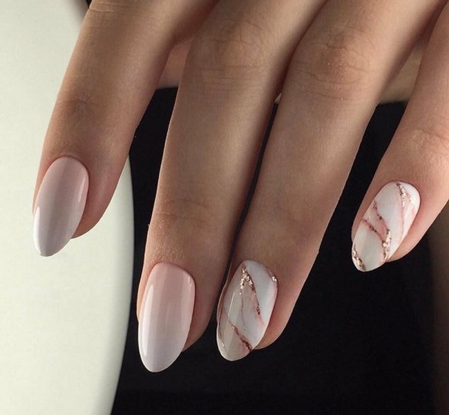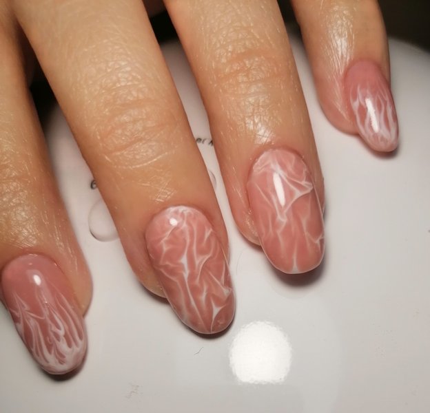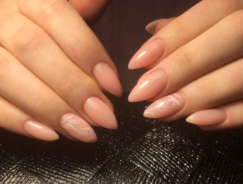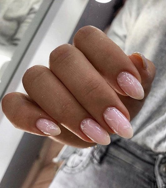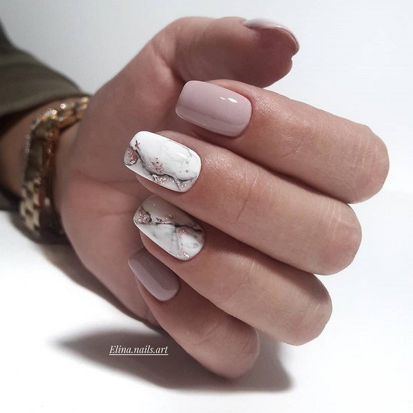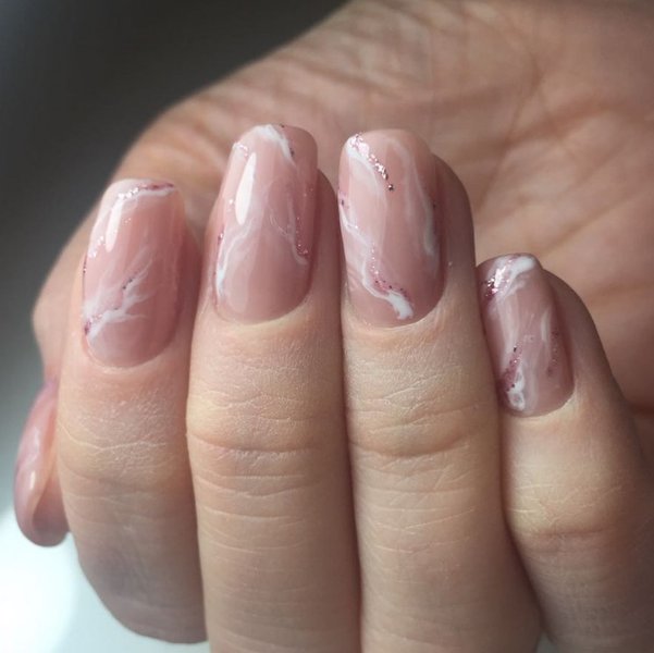 Абстракції мармурових розводів на нюдовому манікюрі – також одна з новинок сезону. Нігті в такому оформленні виглядають неймовірно стильно, дорого та незвичайно. Цей дизайн підійде під будь-який ансамбль.