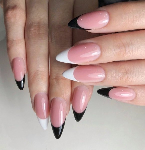 Френч з контрастною кромкою чорного, червоного, синього або іншого кольору надасть манікюру не тільки яскравості, але й невимушеності, навіть зухвалості. Такий манікюр підійде під будь-який образ і стане гарним рішенням у сірі вогкі дні.
