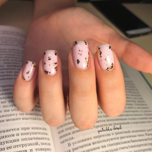 Нейтральний манікюр з додаванням золотої фольги, імітація уламків або золоті лінії – чудове рішення для осені, оскільки робить образ сезоннішим. До того ж багатьом такий варіант подобається, тому що нігті виглядають по-багатому.