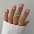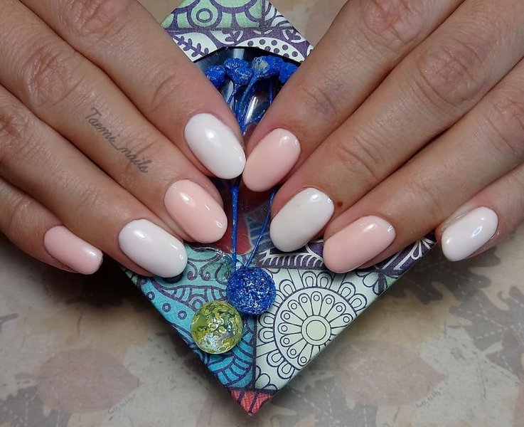 Світлий однотонний манікюр у нюдових тонах – мінімалізм, який популярний незалежно від сезону. Якісно виконаний в одному кольорі манікюр говорить не тільки про прихильність до вічної класики, а й показує професіоналізм вашого майстра нігтьової естетики. Як акцент до нього можна додати обробку стразами, але без фанатизму.