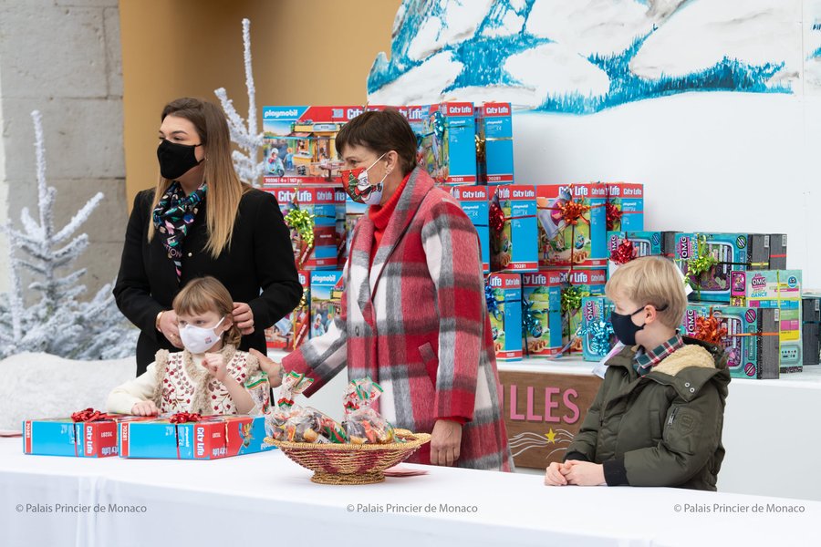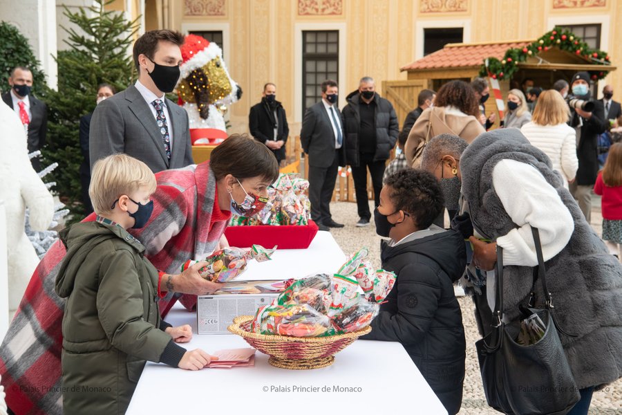 Семирічні принц Жак та принцеса Габріелла, спадкоємці князя Монако Альбера, взяли участь в урочистому відкритті різдвяної ялинки у князівському палаці. Їхня мати, княгиня Шарлен, все ще перебуває на лікуванні, тому подарунки дітям князівства принц і принцеса роздавали в компанії кузенів. Про це пише Palais Princier de Monaco.