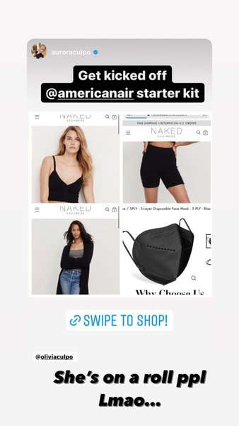 Олівію Калпо не пускали на борт літака в Кабо-Сан-Лукас, Мексика у спортивному ліфі та велосипедах. Сестра Олівії, Аврора опублікувала сториз в Instagram, у якому показала через якийсь одяг її не пропускали на борт літака.