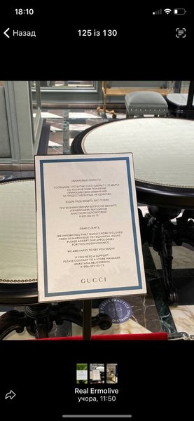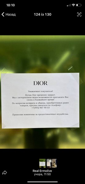 Після новин про припинення роботи в Росії люксових брендів групи компаній Louis Vuitton Moet Hennessy, Kering, Chanel, Cartier та 5 інших, російські блогери стали публікувати фото та відео порожніх полиць із ЦУМу. Так дизайнер одягу Тіма Єрмолов показав у Telegram знімки оголошень від бутиків Dior та Gucci, які попереджають про закриття магазинів.