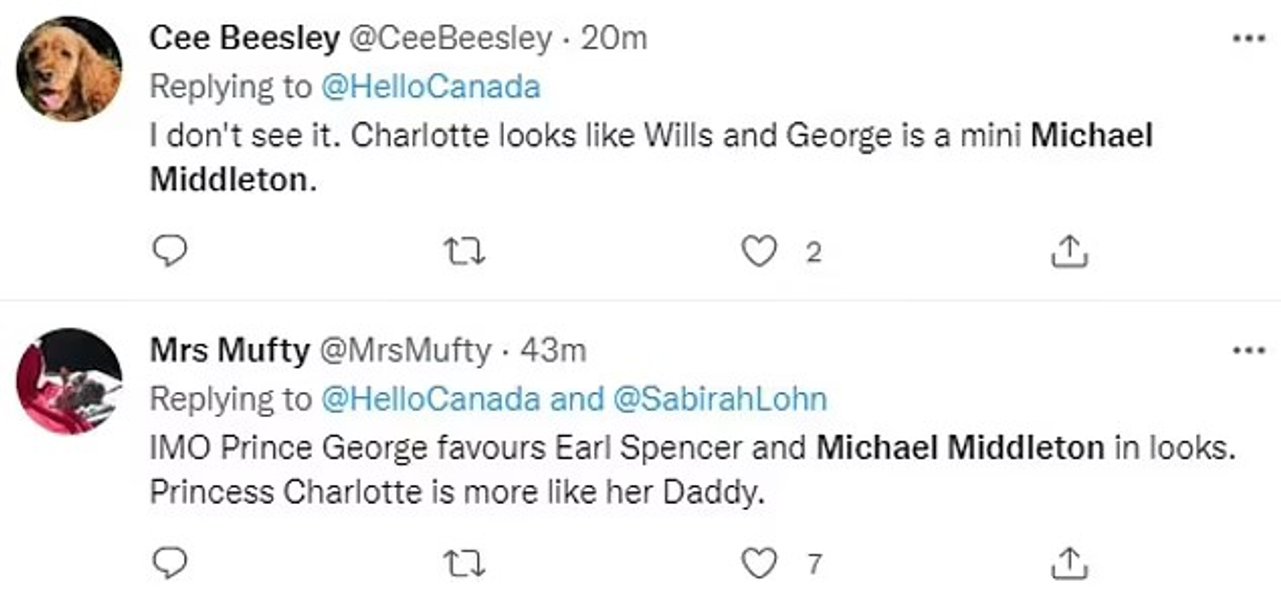 За словами одного з читачів, Джордж — це міні-Майкл Міддлтон. "Принц Джордж виглядає як світловолоса версія Майкла Міддлтона", — написав інший. "Джордж дуже схожий на свого діда Майкла Міддлтона", — вважає ще один спостерігач.
