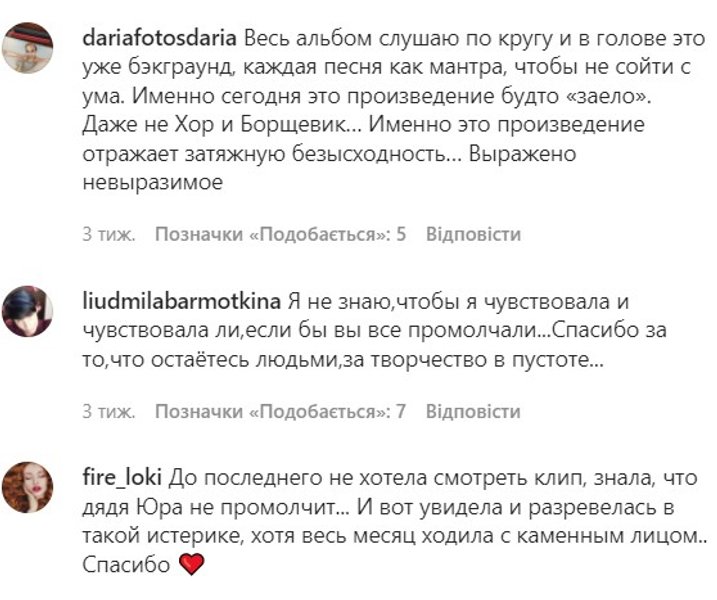 Підписники колективу в соцмережі дякують співаку та його колегам за сміливість та адекватний погляд на події.