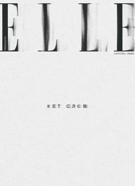 На чорно-білій обкладинці невиданого журналу написано всього два слова "Немає слів". А назва глянцю візуально розмита. Швидше за все, такий меседж пов'язаний з придушенням свободи слова в Росії та початком повномасштабної війни на території України.