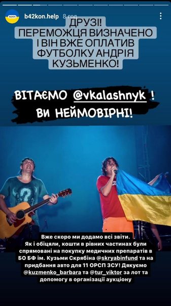 Футболку Кузьми Скрябіна продали за 255 тисяч гривень