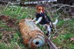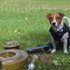 Біло-рудий пес породи джек-рассел-тер'єр Патрон, якому 2,5 роки, служить у підрозділі Державної служби з надзвичайних ситуацій Чернігівщини та задіяний на розмінуванні територій.