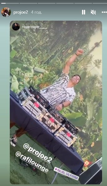 Як видно на кадрах, хлопець стоїть за діджейським пультом і розважає кількадесят гостей на відкритій терасі Rafi Lounge з видом на океан у Малібу. На ньому — біла сорочка з чорним малюнком, коричневі штани та чорно-білі кеди.