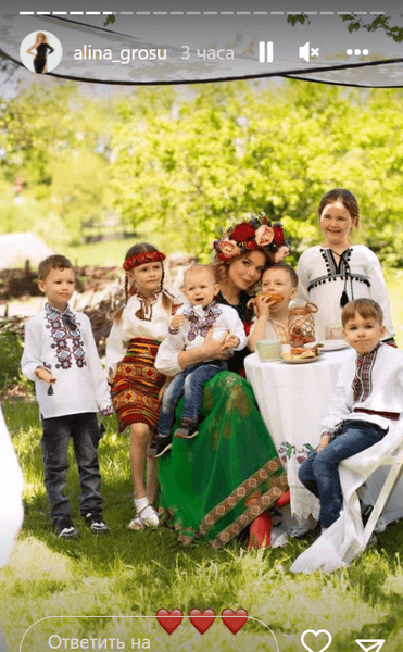Співачка Аліна Гросу до Дня вишиванки підготувала сімейну фотосесію у традиційних українських костюмах. Знаменитість привітала всіх зі святом і побажала українцям бути сильними та хоч трохи частіше посміхатися. Аліна Гросу позувала з величезним вінком із квітів на голові.