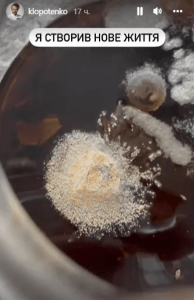 "Приїхав до Києва. Зараз будуть важливі новини з мого будинку. Минулого разу забув чай викинути. Подивіться, яка ідеальна пліснява. Як можна її не любити", — сказав Клопотенко, показавши на знімку заварник із недопитим чаєм, у якому виріс грибок.