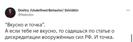 "Вкусно и точка. А якщо тобі не смачно, то сідаєш за статтею про дискредитацію збройних сил РФ. І крапка", — пишуть користувачі.