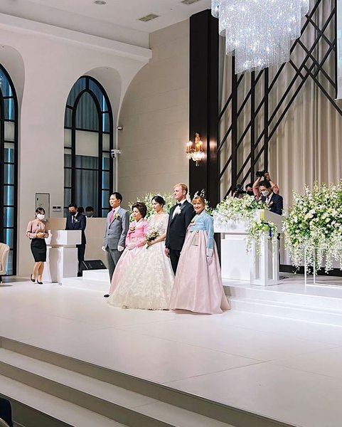 Але цього року сім'я влаштувала ще одну розкішну церемонію в Сеулі, Південна Корея, для родичів нареченої.