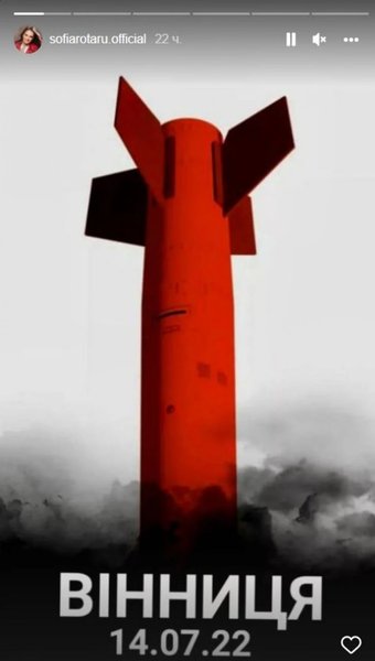 74-річна співачка Софія Ротару, яка щиро підтримує український народ у боротьбі з російською агресією, але рідко висловлюється на цю тему, не змогла пройти повз трагедію у Вінниці, де 14 липня три крилаті ракети "Калібр" вдарили по центру міста, забравши життя 23 мирних жителів.