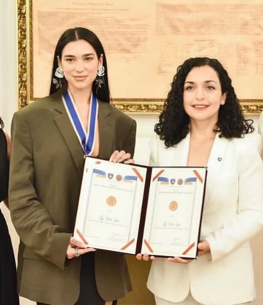 "Я надала звання почесного посла Республіки Косово Дуа Ліпі, тому що вона продовжує вшановувати нашу країну кожним своїм кроком і кожним своїм виступом. Я подякувала їй від імені всіх громадян Республіки Косово за все, що вона вже зробила та робить, щоб наш голос був чутний всюди у світі", — сказала Вйоса, опублікувавши кілька знімків.