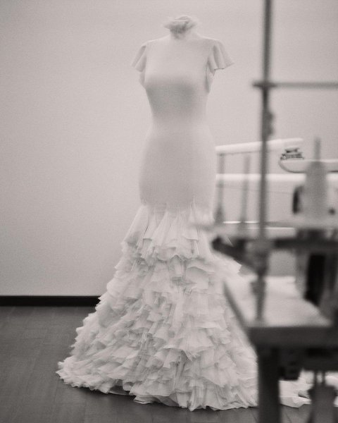 Головна сукня, та сама, в якій Дженніфер Лопес йшла до вівтаря, доповнена довгим шлейфом і воланами.