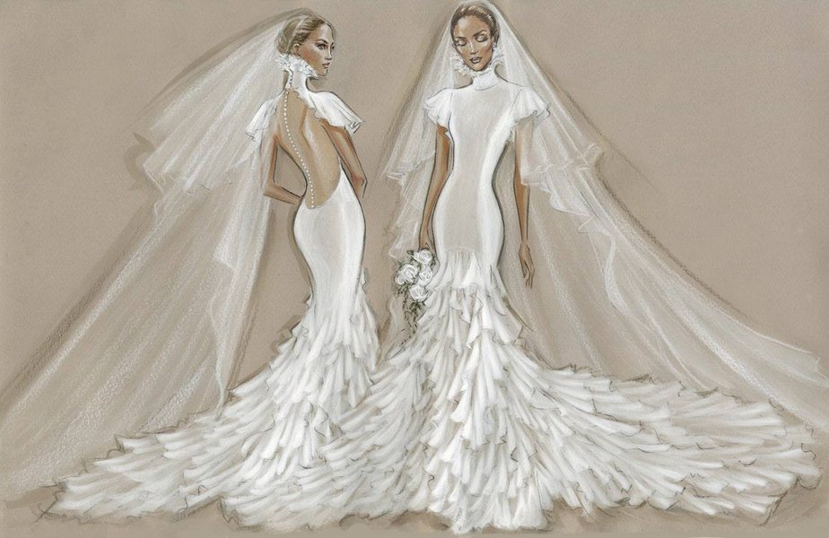 Весілля Дженніфер Лопес і Бена Аффлека пройшло, і молодята вже поїхали на медовий місяць до Італії, але фото з урочистостей, Джей Ло, схоже показуватиме поступово. Так, нарешті з'явилися ескізи суконь від Ralph Lauren, які вона одягала на весілля. Про це пише Grazia Magazine.