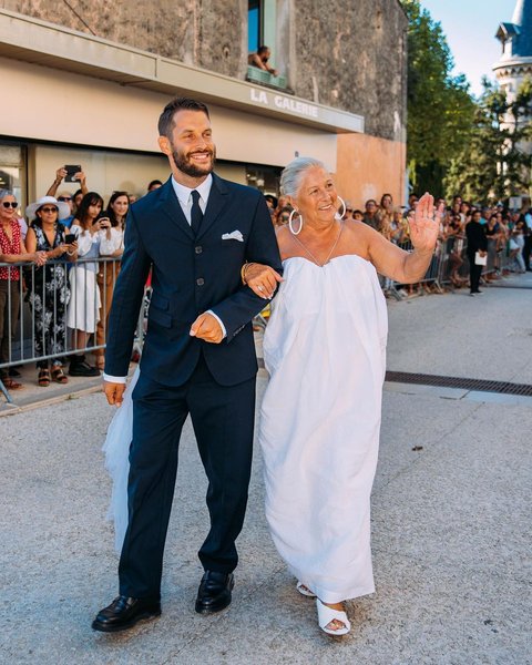 До вівтаря його вела його бабуся Лілін, яка підтримувала його у всіх починаннях і яку він обожнює, а весільну вечерю влаштували під сторічними буками в замку Шато де Бонневаль, куди сам Жакмю їздив у дитинстві велосипедом.