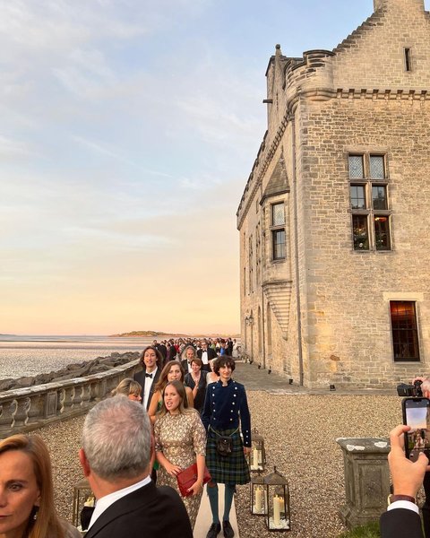 Гостей зібралося чимало, прибули й батьки нареченої: Елізабет Мердок, яку називають однією з найвпливовіших жінок Великобританії, та Метью Фрейд — правнук того самого Зигмунда Фрейда.