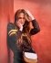 На фото зірка позує в костюмі з жовтими смугами, що складається з толстовки та джогерів. Спортивний ансамбль доповнюють коричнево-кремова сумочка через плече та яскраво-жовті туфлі-човники на шпильці. На кількох фото вона додала до ансамблю бежевий плащ.