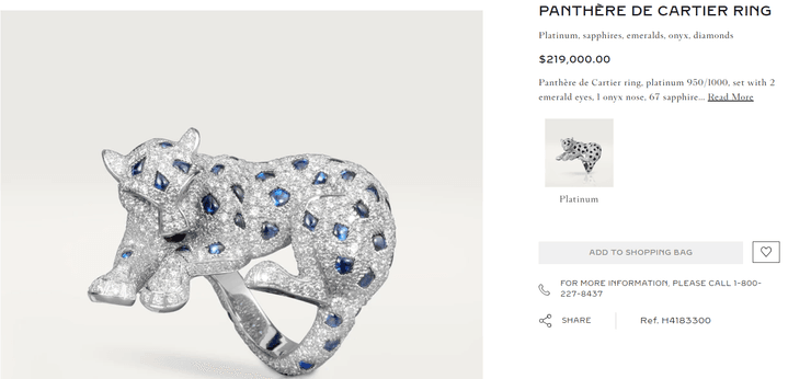 Наразі каблучка "Пантера" за 8 млн гривень недоступна для замовлення.