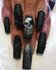 Який же Гелловін без скелетів та черепів. Найчастіше майстри нігтьового дизайну пропонують манікюр, де на чорній основі намальовані білі кістки або черепи. Їх наносять як пензликом, так і за допомогою стікерів. У будь-якому випадку такий манікюр виглядає доречно та дуже зловісно.