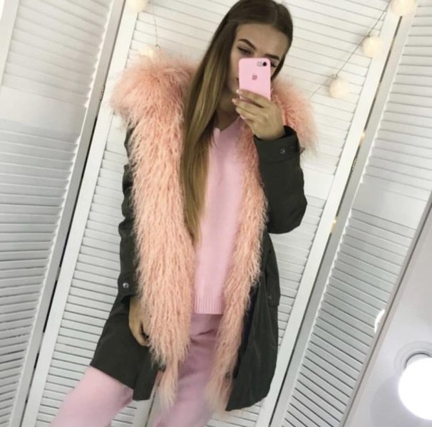 Яскраве контрастне хутро каптура і підкладки зробить образ свіжішим і дозволить виділитися в натовпі. З відносно спокійною кольоровою гамою куртки хутро може бути неоновим рожевим, лаймовим, помаранчевим, блакитним, синім, смарагдовим тощо.