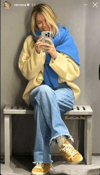 Знаменитість виклала кілька сторіз з Берліна, на яких, зокрема, продемонструвала лук у кольорах українського прапора.