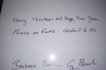 Дружина 41-го президента США Джорджа Буша-старшого Барбара Буш вітає радянського політика з Новим роком та Різдвом: "Merry Christmas and Happy New Year. Peace on Earth — Goodwall at All". На звороті перераховані всі 26 представників сім'ї президента США, включаючи Буша-молодшого.