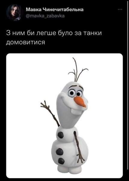 Українці припускають, що легше було би домовитися з Олафом з мультфільму "Крижане серце". А українські дівчата головною причиною поганого настрою наразі вважають те, що Німеччина досі не вирішила надати танки Україні.