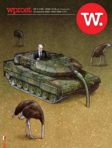 А польське видання Wprost розмістило на своїй свіжій обкладинці карикатуру, у якій порівняли німецького політика із страусом, який ховає голову у пісок.