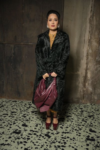 У чорній шубі та бордових туфлях: Сальма Хаєк на показі Bottega Veneta MFW