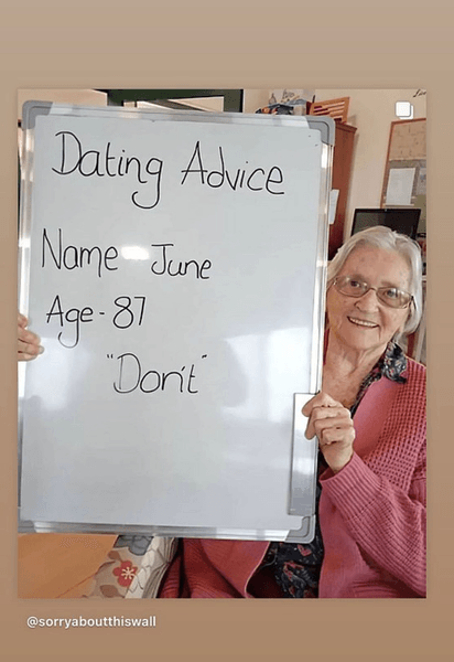 Хадід опублікувала зображення 87-річної жінки на ім’я Джун, яка тримає табличку з порадою щодо побачень, просто: "Не роби".