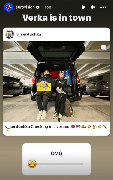 Офіційний акаунт Євробачення зробив репост публікації українського артиста у stories за підписом: "Вірка в місті", а в коментарях написав: "Ласкаво просимо до Ліверпуля".