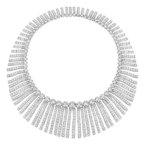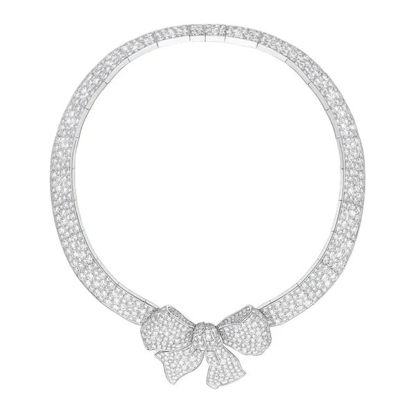 Для зйомок відтворили кольє Franges з "бахромою" з білого золота та діамантів, сережки з японських перлів, білого золота та діамантів Plume, що повторюють обриси пір'я, та кольє Ruban із платини, білого золота та 855 діамантів, виконане у вигляді банту, зав'язаного навколо шиї.