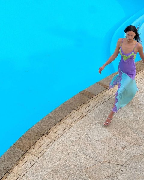 Вперше цю сукню на подіумі продемонструвала Наомі Кемпбелл на показі колекції Gianni Versace Fall 1996 року.