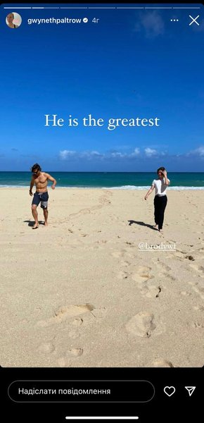 Потім вона показала знімки коханого з домашнім улюбленцем, на відпочинку біля моря та зі своєю донькою Еппл.