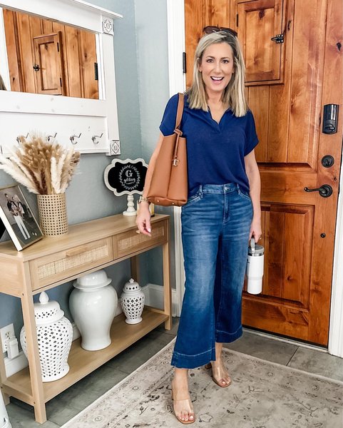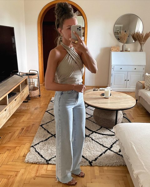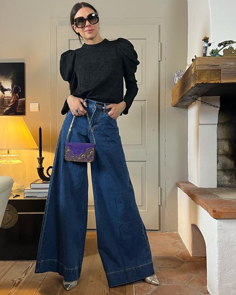 І наостанок — чудовий варіант ансамблю з широкими джинсами, який підійде на всі випадки життя: і для офісу, і для побачення, і для прогулянки містом.