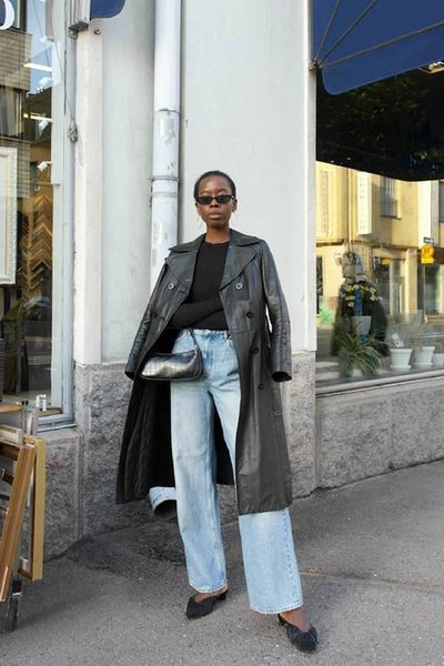 Якщо говорити про тренди у верхньому одязі, то шкіра, чи то штучна, чи то справжня, в сезоні осінь 2023 — must have. Якщо взяти широкі укорочені джинси, то в поєднанні з довгим плащем вийде зухвалий образ, який успішно завершать кросівки, чоботи або черевики. У разі, якщо ви збираєтеся в офіс або на ділову зустріч, то обирайте вишукане взуття на підборах: туфлі або ботильйони.