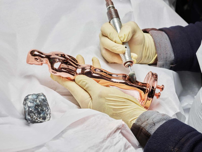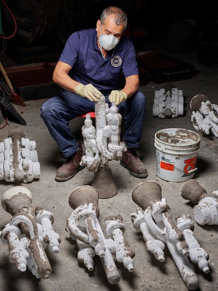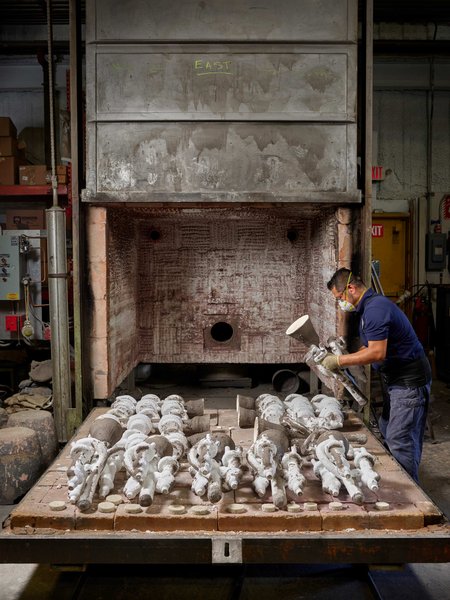 Спочатку працівники створюють воскові фігурки високої роздільної здатності на основі моделі, надрукованої на 3D-принтері. Потім до них прикріплюють систему літників і занурюють у чан із кварцовим піском, щоб створити керамічну оболонку навколо воску. Кремнезем — популярний інгредієнт у кераміці, оскільки він допомагає їй зберігати форму.