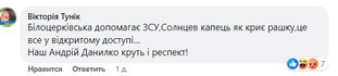 "Ну, Білоцерківська оголошена іноагентом у рашці, давно вже громадянка Франції і дуже потужно допомагає нашому волонтерському фонду "Світлий" (Світлана Легенька). Вона знаходить і доставляє нереальні речі для наших військових дівчаток на фронт. Сердючка мені була, є і буде пофіг", "Білоцерківська допомагає ЗСУ, Солнцев капець як криє рашку, це все у відкритому доступі... Наш Андрій Данилко крутий і респект!", "Слід слідкувати за подаваною інформацією, Білоцерківська дуже масштабно підтримує Україну й допомагає їй", "Сердючка викликав Паніна на сцену. На футболці Паніна напис: Fuck putin. Панін відкрито і ясно підтримав Україну", "С*ердючка не виняток із цієї попсової тусовки. Кон'юктурників і пристосуванців там більшість, згадайте хоча б нещодавній зашквар такого ж штибу зі Скрипкою... Вони змушені пристосовуватися, але насправді їх увесь час тягне до рідного, зрозумілого та комфортного для них середовища", — пишуть користувачі.