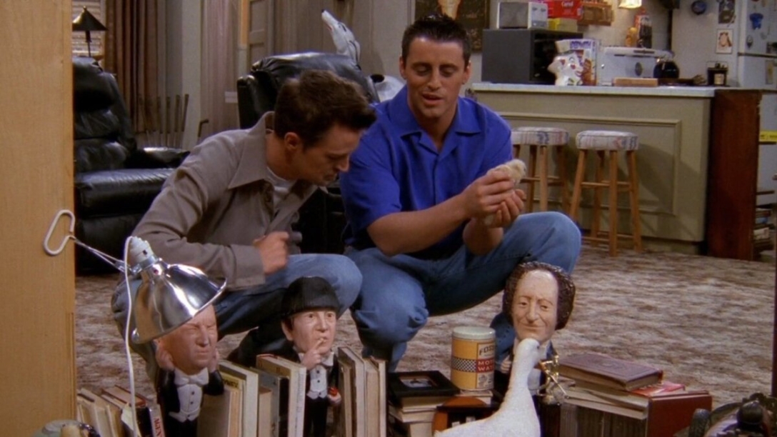 На зауваження Джо про те, що в качки й курки могла б з'явитися дитина, яку вони б назвали Chuck — з'єднання "chicken" (курка) та "duck" (качка), Чендлер відповідає: