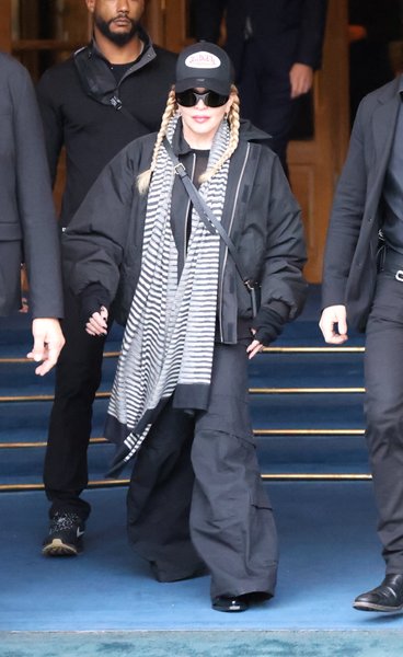 ВажливоВона вийшла в чорній кепці та темних сонцезахисних окулярах. Мадонна приміряла темну теплу куртку і широкі штани, а до паризького образу артистка додала шарф у смужку, який спадав до її колін.