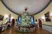 На фото видно, що "цукеркові" прикраси звисають зі стелі коридору між Східним крилом і резиденцією, а вестибюль прикрашають сани Санта Клауса з оленями.