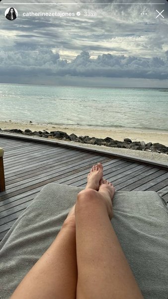 Також Кетрін Зета-Джонс продемонструвала свої підтягнуті ноги на фоні океану.