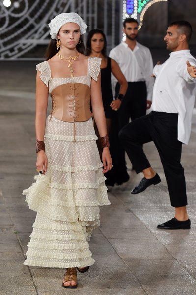 Дорогі тканини — оксамит, жакард, вельвет, вовна, мережива. Усі обрані фактури мають яскраві кольори та поєднують важкість матеріалу з легкістю мережива чи мохеру.