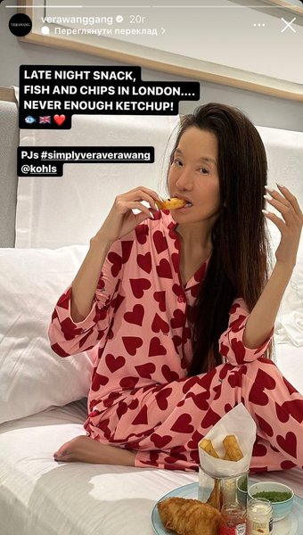 "Нічний перекус. Риба та чипси в Лондоні. Ніколи не достатньо кетчупу!" — написала Вонг.